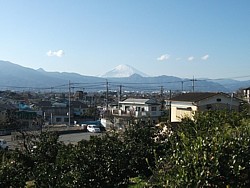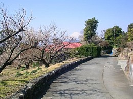 左:城前寺近くの梅林から冠雪の富士山を。    画像をクリック→拡大表示