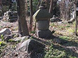 中: 城前寺東100mほどの空き地に、空輪(トップ)が一部欠損した大きな五輪塔が見えた。ここが雄山荘(実業家加来金升の別荘)の跡で、