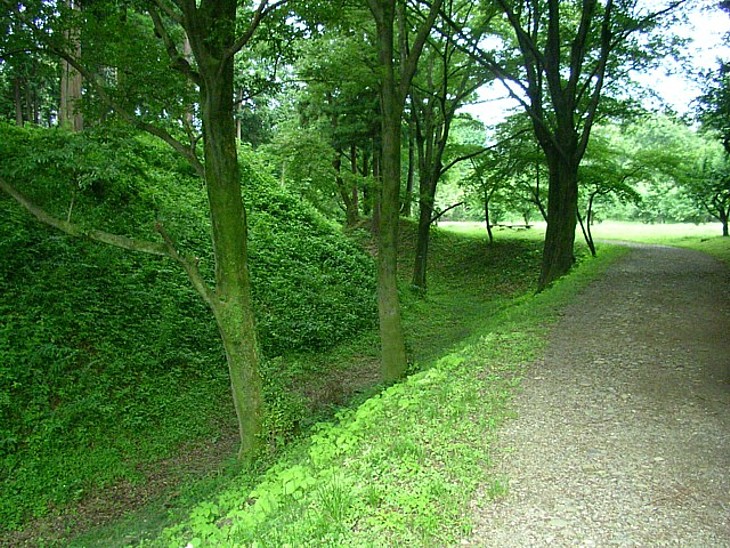 国指定史跡 伝・畠山重忠の菅谷館跡。土塁と堀などの遺構は全て室町時代以後のもの。