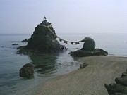 この660m沖の海中には降臨する神様の依り代「輿玉神石(沖の石)」があり、夫婦岩はその鳥居と考えられているそうな。観光用データに拠れば男岩は高さ9mで周囲39.6m、女岩は高さ4mで周囲9m。注連縄は長さ35mで男岩に16m+女岩に10m巻き付けられており、毎年5月5日と9月5日と12月の中旬に張り替えられる。夏至の前後が岩の間に昇る朝日を見る絶好の季節、らしい。