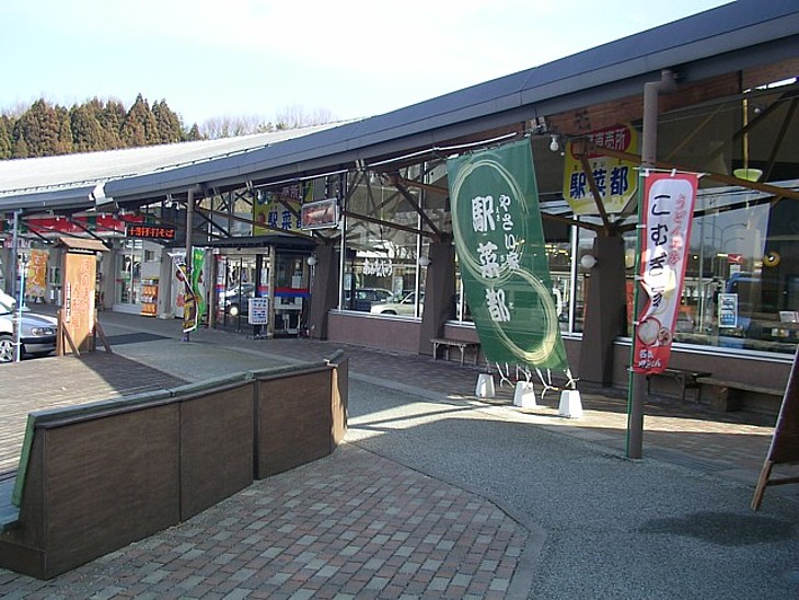 メイン駅舎の右寄り、「和紙伝承館」の左隣りには地場野菜の直売所と数軒の食事処がある。