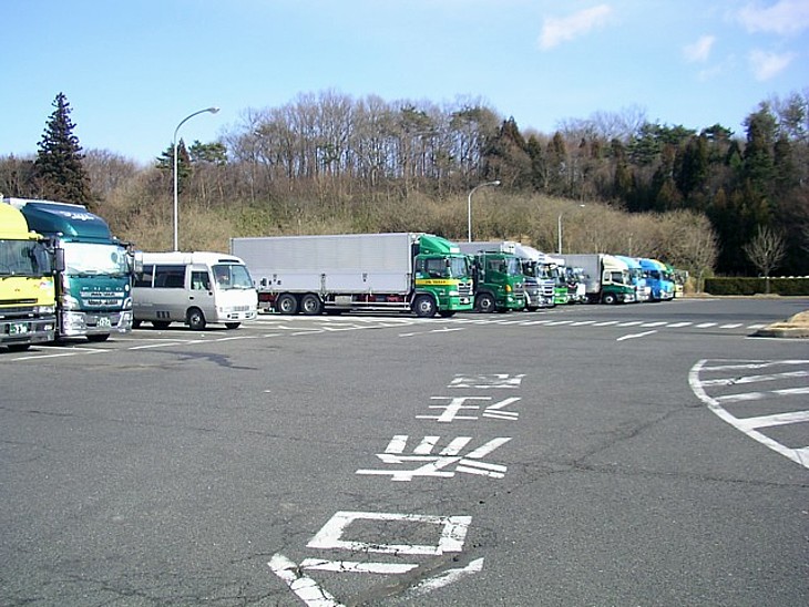 国道から入ってすぐ左側の大型車用駐車場。駅舎から少し離れているが普通車とは完全に分離されている。