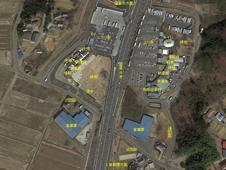 交通量の多い4号国道に面して便利だが落ち着かない。2012年、下り車線側にも新駅が開業して便利になった。