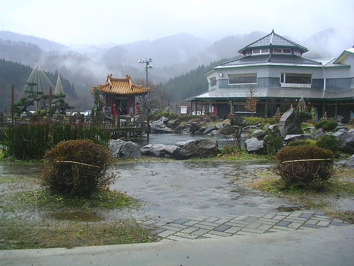 駅舎の裏には広い庭園がある。多分駅舎の右側を迂回して阿賀野川沿いから散策できると思う。
