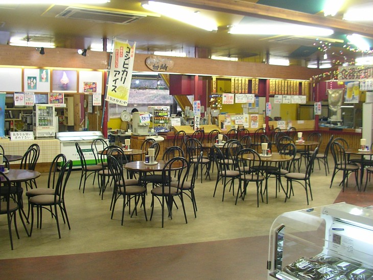 広い軽食コーナーでは麺類&お握り程度の食事もできる。中華食堂も隣接しており、選択肢は広い。