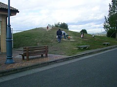 駅裏の園芸コーナー周辺に芝生広場がある。裏手にも農道が延びているためのんびり散歩させるルートは充分にある。 |