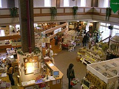 メイン駅舎前のアプローチなど屋外には数ヶ所の広いスペースがあるが屋内には特に固定されたコーナーは見られない。 |