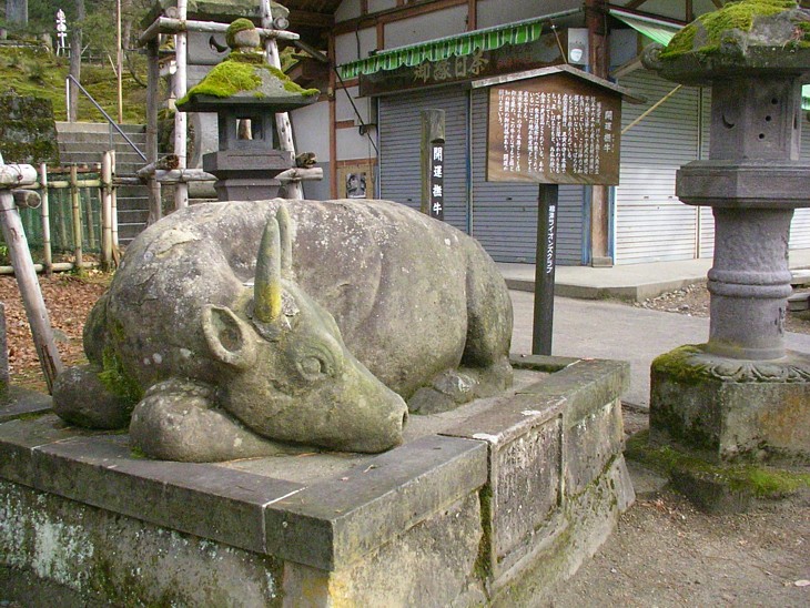 虚空蔵堂の木材運搬に最後まで頑張ったのが赤毛の牛で、これがら「赤べこ」の起源になったと伝わる。
