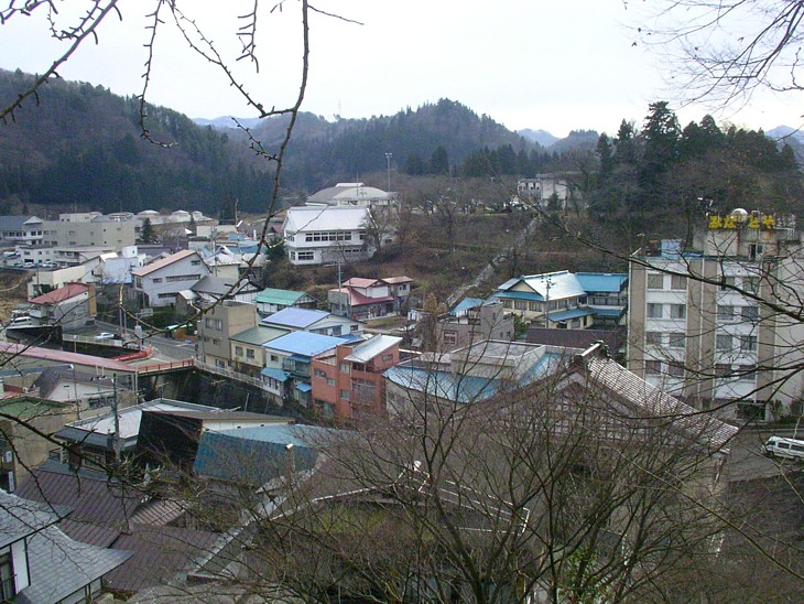 圓蔵寺から柳津の温泉街を。向い側の高台が「町民センター」、全体に歓楽色の薄い静かな温泉地だ。