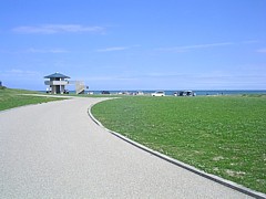 砂浜沿いに遊歩道が伸びている。もちろん水遊びできる浜辺や陽光を遮る防風林もあるので散歩ルートには不自由しない。 | |