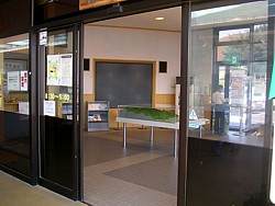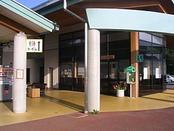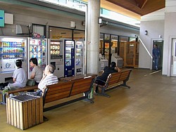 駅舎右側に情報コーナーを兼ねた屋内の休憩室、トイレに向かう屋外通路の自販機前ベンチの両方は24時間利用できる。 | |
