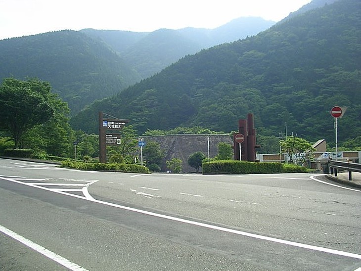 伊豆の分水嶺を貫く天城トンネルへ約2km、両側は深い谷と山並みが続き、狩野川の水源林も近い。