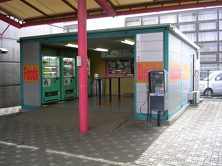 入口の右横にはやや殺風景な立ち食いそば店と自販機コーナー。麺類がメインで、価格は安い。