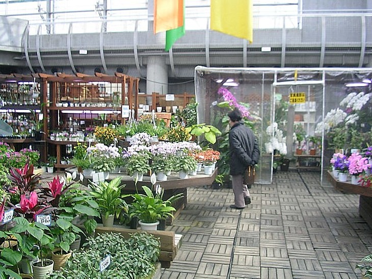 造園や植木がメインの町、観葉植物が多く花鉢は少なめ。今回は12月、洋ランやシクラメンが多かった。