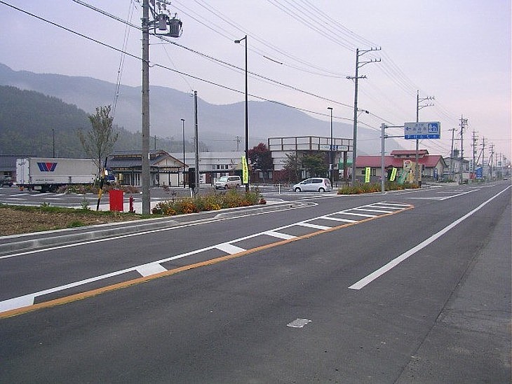 上田市街に向かう国道143号。東山道が小県郡に入って最初の宿駅・浦野驛が置かれたのが現在の青木村。