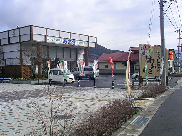 国道に面して10台弱の駐車スペースを備える物産館&野菜の直売所。奥の赤屋根は以前の食堂だった。