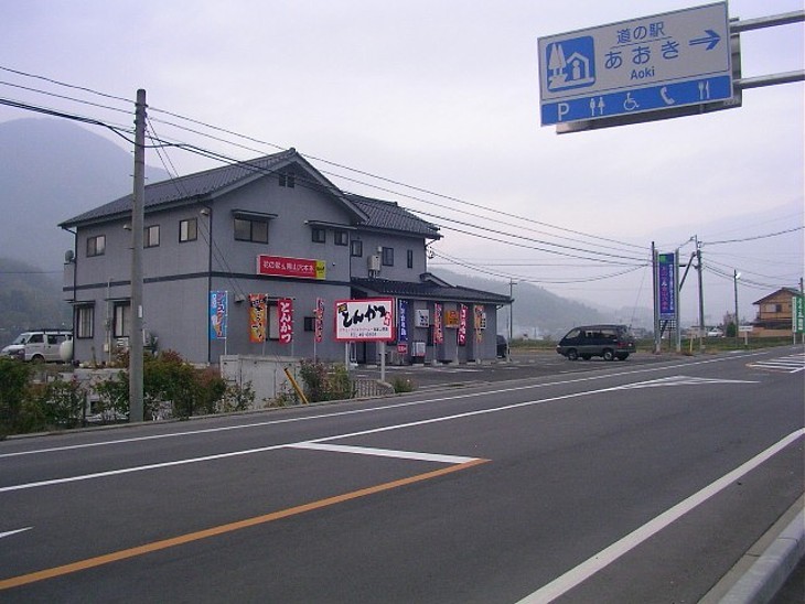 筋向かいの食堂はP泊の夕食に利用できるが迷惑にもカラオケ付き、青木村の交流サロン的な存在かな。