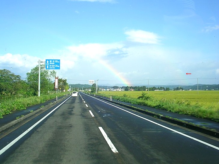 09年9月の朝、大崎から鳴子への途中で見事な虹が見えた。右側にも一つ、珍しい二重の虹だった。