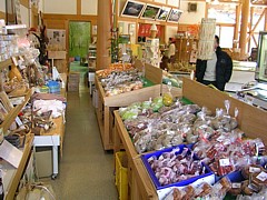 10時〜18時(11月〜2月は17時まで)、ほとんど農産品がメインで加工品が多少並んでいる程度。特産品は豆腐・蒟蒻など。 | |