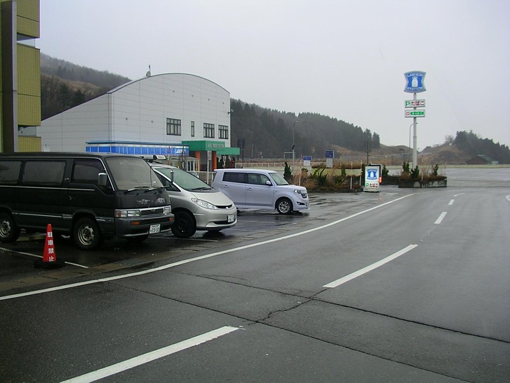 ホテル隣のローソンは閉店、向いにセーブオン(24時間営業)がある。この先は大型車用の停泊地だ。
