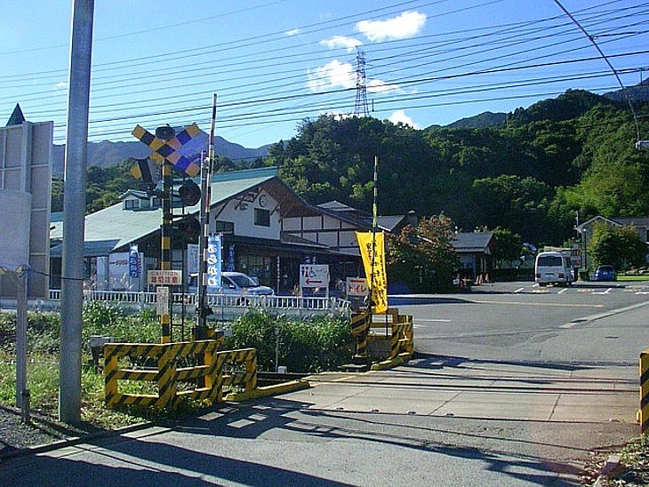 国道140号から200mで秩父鉄道の踏切を渡る。周辺は低い山に沿った閑静な環境に包まれている。
