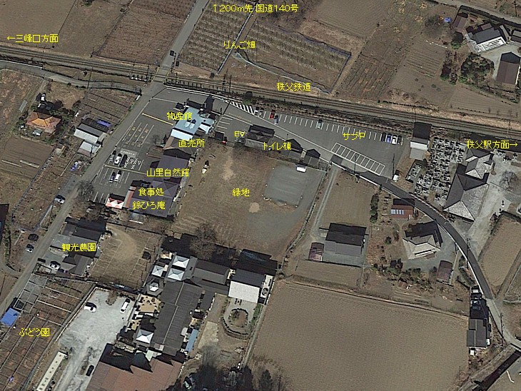 国道140号から200mで秩父鉄道の踏切を渡る。周辺は低い山に沿った閑静な環境に包まれている。