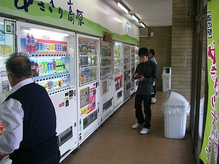 物販棟の表側には自販機が並んでいる。朝霧高原の牛乳など、地域のオリジナル商品が選べるのも楽しい。