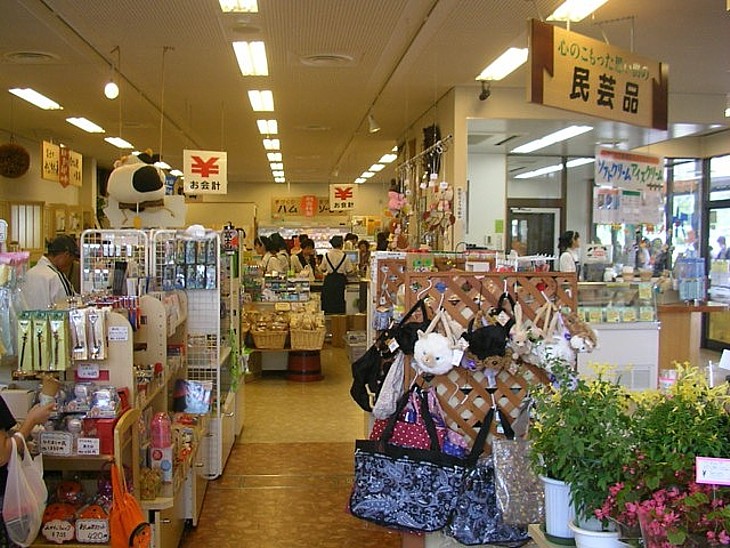 手作り品や酪農関連品がいろいろと並ぶ物販コーナー。商品の種類は多いがそれ程の特徴はない。