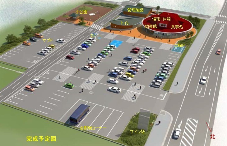 この鳥瞰画像では一部の施設が未完成のまま。サブPや公園などは