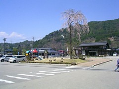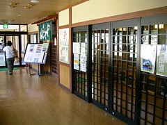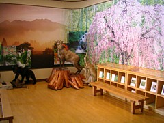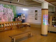 駅の営業中は地域PRを兼ねた広いスペースが利用できる。満開の枝垂れ桜をプリントした壁紙が美しい。 | |