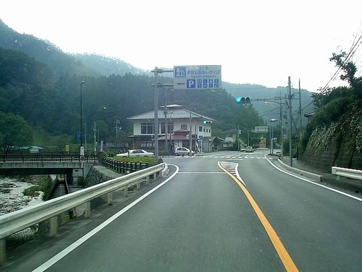 正丸トンネルを抜けて4km下った横瀬川沿い。秩父市街まであと5km、道巾が狭いから運転に要注意。