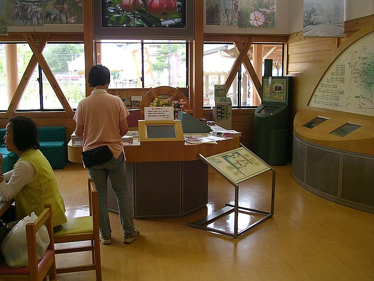 駅舎の一角に設けてある休憩と地域のPRコーナー。利用者が少ないおかげでのんびり過ごせるのは嬉しい。