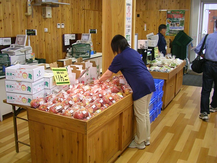 開業当初の産直野菜と果物売場はやや狭かったが現在は会津米や地酒・味噌のコーナーも新設したらしい。