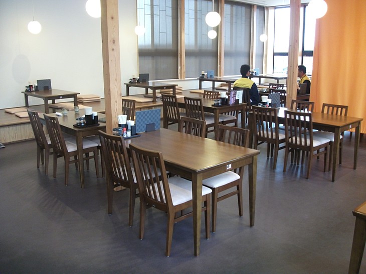 駅舎右側の食事処は近隣に外食が少ないためか結構繁盛している。メインは人気の高い麺類だ。