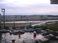 一望できる露天もある。馬頭温泉郷の泉質は「みょうばん湯」溶けた成分で肌がツルツルになる、いわゆる美人の湯だ。以前の訪問(確か三回目)