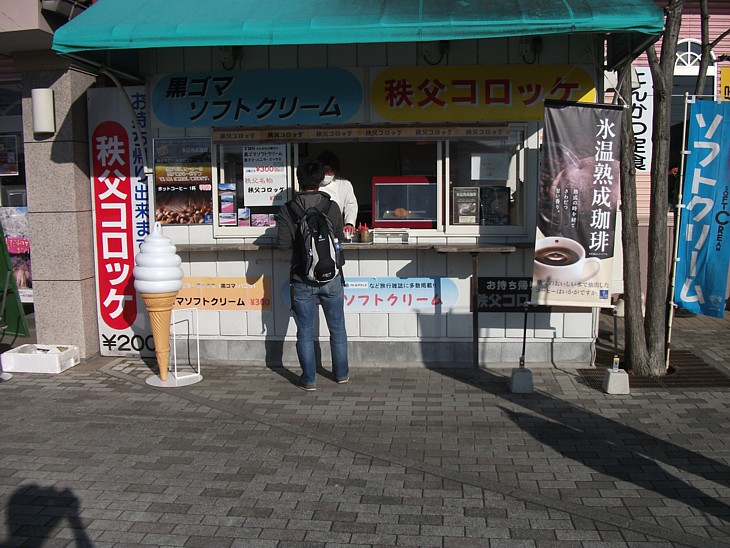 休日には駅舎前でテント販売も楽しめる。秩父の物産も多いが露天商みたいで魅力に欠ける店も結構多い。