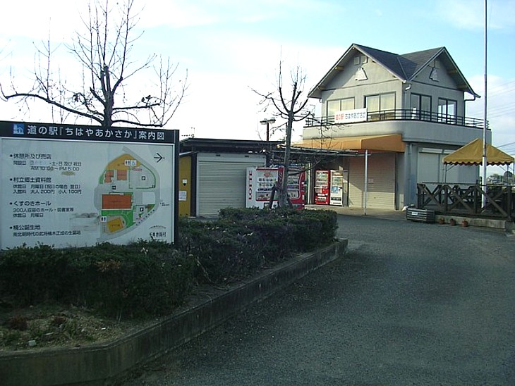 駅前にある数台の駐車スペースから見た駅舎。表示がなければ住居付きの小さな商店にしか見えない。
