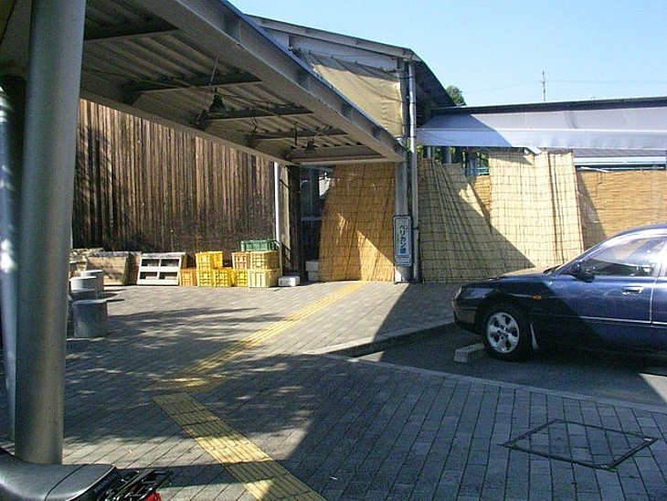 障害者用の駐車場横から休憩施設を。冬の利用者は殆どゼロ、資材置き場に利用されているらしい。