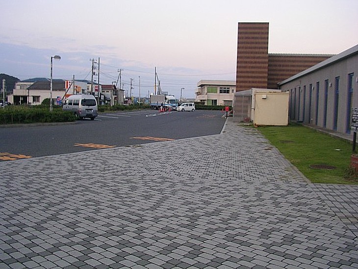 駐車場は前道路に沿って駅舎前から公園まで長く広がる。海水浴シーズン以外は比較的静かだ。