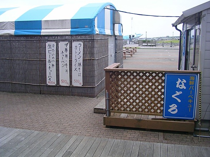 駅舎の中庭は屋台の海鮮バーベキューコーナーがある。実質的には夏の休日以外は開店休業だ。
