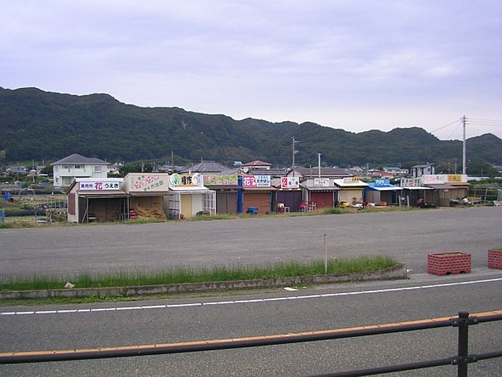 駅の前には「花摘み」の店が並ぶ。ピークは1月初旬〜3月下旬、例えばストックが1本50〜80円。