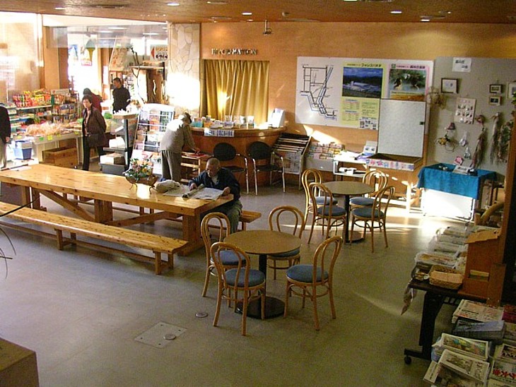 売り場に続く休憩室は広くて余裕があり設備も整っている。テーブルも多く、快適なスペースだ。