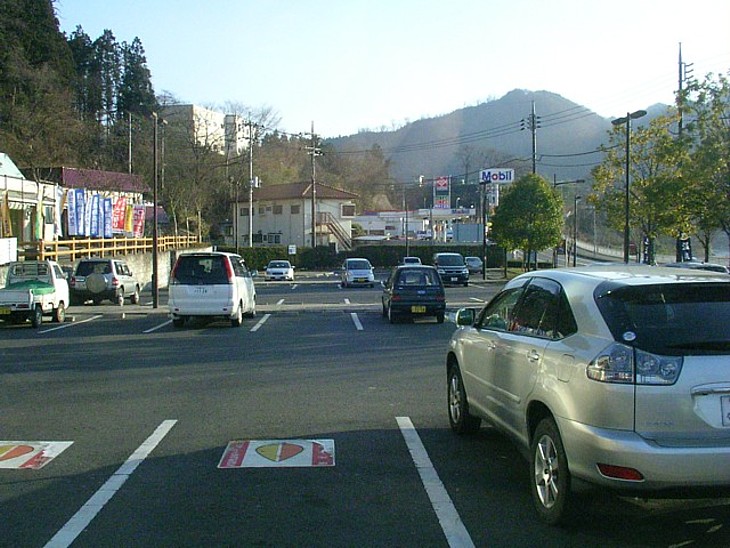 駐車場の入口寄りには身障者用に加えて高齢者専用の駐車場が造られているのが目を惹く。