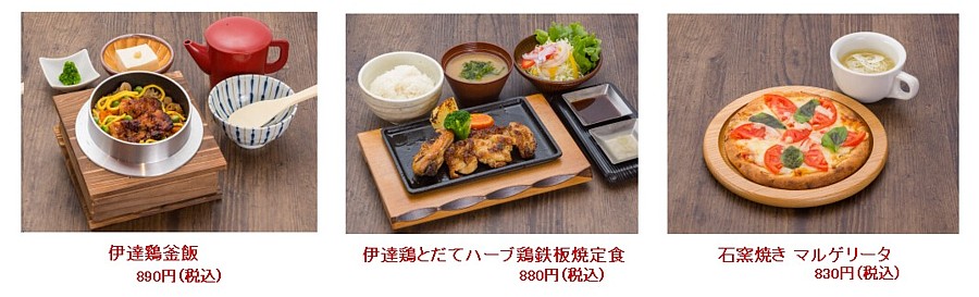 ● 「だて食庵」は11〜15時、 三種類の代表メニューは価格もリーズナブル、どれを選んでも満足できるのは嬉しい。 | |