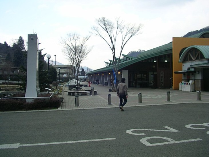 軒の出が大きく広いため全体に落ち着いた雰囲気だ。左には小川、その横には芝生が広がる。