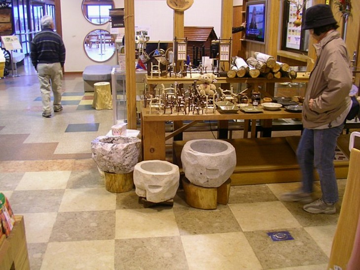 物販コーナーは山村の物産がほとんど。手作りの工芸品なども並んでいるが、価格はやや高め。
