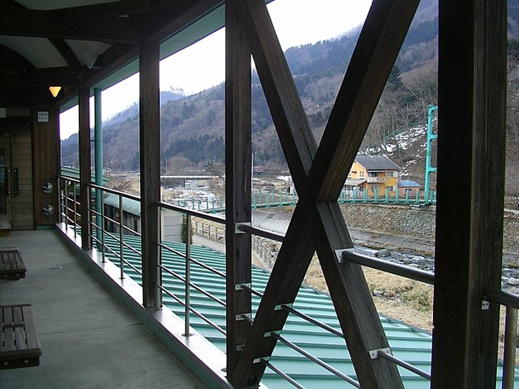 トイレ横の階段を登るとテラス風の広い休憩スペース。暖かな季節ならのんびり過ごすのも悪くない