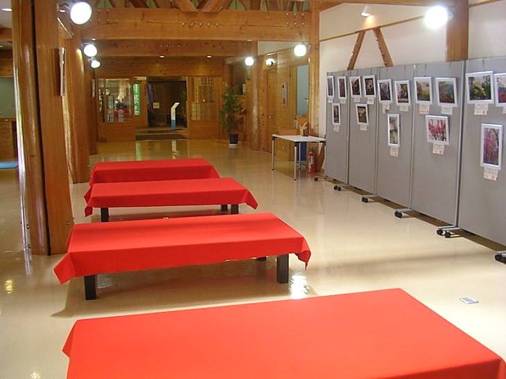 メイン棟の展示コーナーは広くて落ち着いた雰囲気がある。もちろん、のんびりと休憩することもできる。