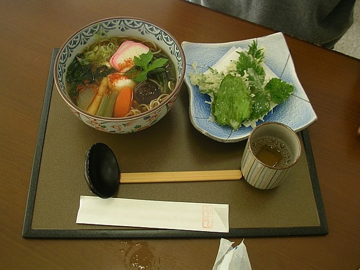 妻が注文した「手作りかき揚げ蕎麦 850円」、画像には入っていないが御飯も付いてくる。