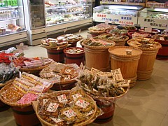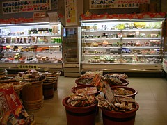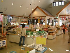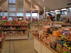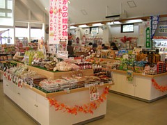 物産コーナーは9時半〜18時、敷地内に地元野菜などの加工施設があるためオリジナルの調味料や加工食品の種類が多い。 | |